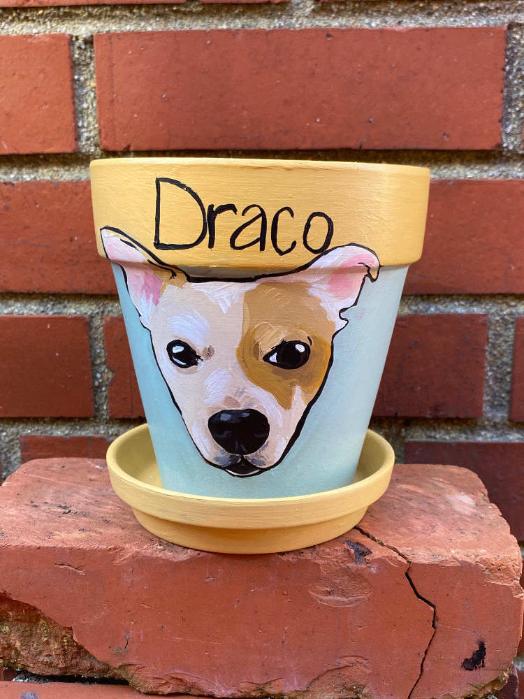 Custom painted pots for Pet People. @yours&Vine_RVA on Instagram